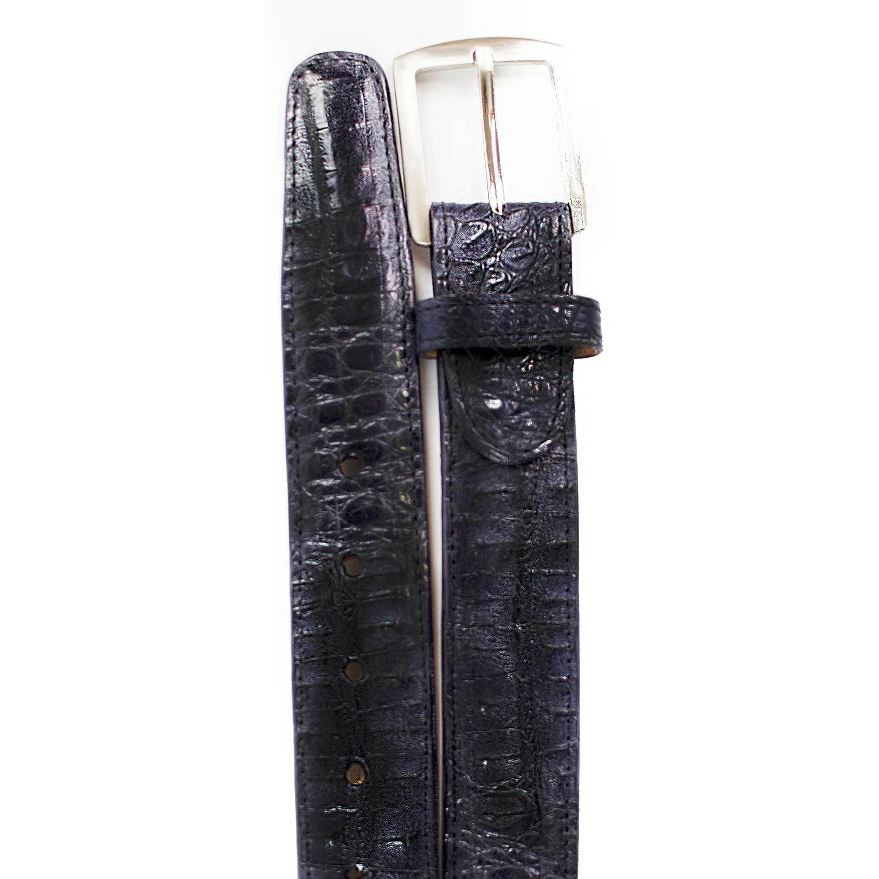Mens Belvedere Caiman Crocodile Dress Belt in Black